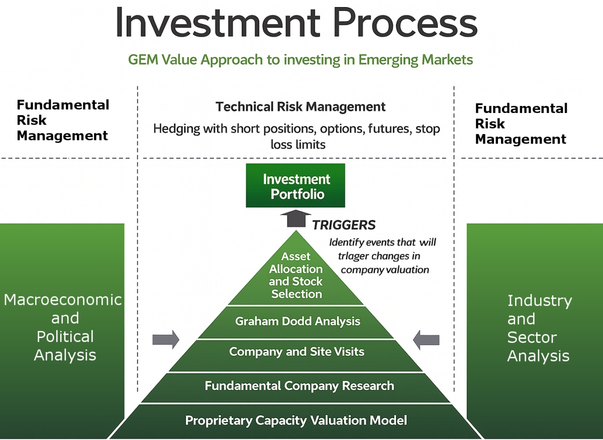 The heart of our investment process is based on in-depth and continuously updated proprietary research combined with the experience and insight from investing in emerging markets.